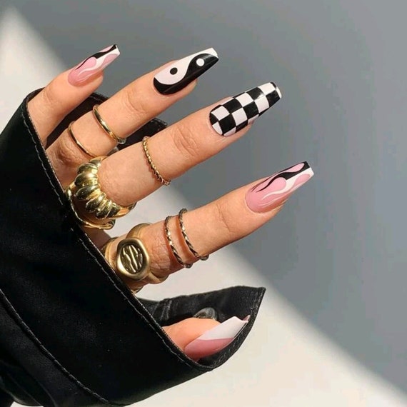 | 24pcs Fake Nails With Designs Coffin Artificial Nails Tips Overhead Medium Length Press On Nail False Nails Art Accessories False Nails Aliexpress |